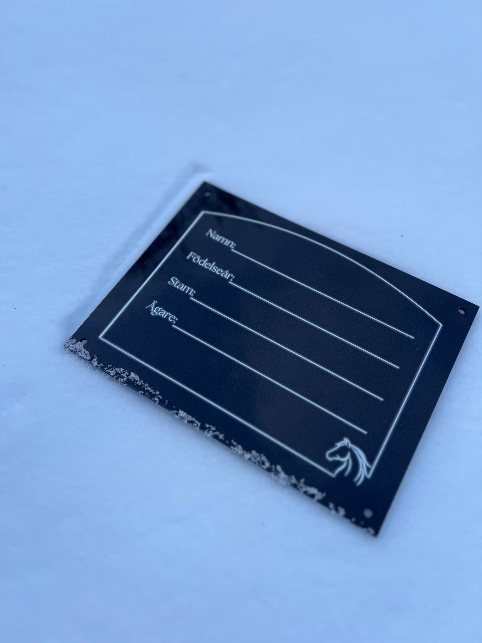 Alla skyltar är försedda med fyra skruvhål á 4mm som gör det enkelt att skruva upp på boxen, skruva försiktig med en lagom stor skruv så inte skylten spricker. Skyltarna är 24x18 cm stora och 3mm tjocka i en hållbar plast som tåler slitage.